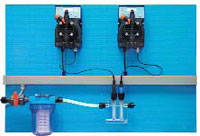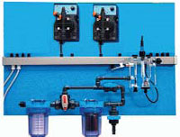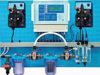 (конфигурация В) дозирования и контроля хим. реагентов рекомендуется как дозирующая система для общественных бассейнов, объемом до 2000 м3. Мембранные соленоидные дозирующие насосы изготовлены в соответствии с ÇË нормами. Диапазон измерений: 0-14 pH, ±2000 mV, 0 10 мг/л. Çl2
