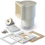 Скиммеры из ÅBŠ-пластика. Монтируются на узкий или широкий борт бассейна. Комплектуются шлангами для подключения насоса, подающей форсункой. Предусматривается подключение шланга водного пылесоса Д 38.