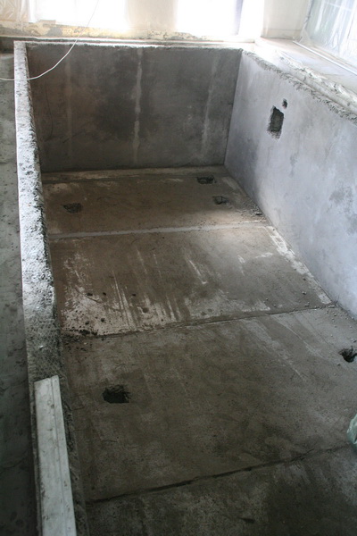 Чаша бетонного бассейна должна «выстояться» не менее 28 дней при нормальной температуре и влажности воздуха. Следует сразу уведомить заказчика о недопустимости укорачивания сроков строительства бетонной чаши и неразумности экономии на всём: на практике это приводит к несоблюдению принципов строительства бассейна, т.е. к уменьшению необходимого времени созревания бетона и применению материалов низкого качества. Марка бетона может варьироваться от М-300 до М-450. После снятия опалубки поверхность дна и стен бассейна должна быть как можно более ровной, без ям и вздутий. Особое внимание следует уделить прочности поверхности в области углов бассейна. После осуществляется оштукатуривание(выравнивание) поверхностей, подготовка к гидроизоляционным работам.